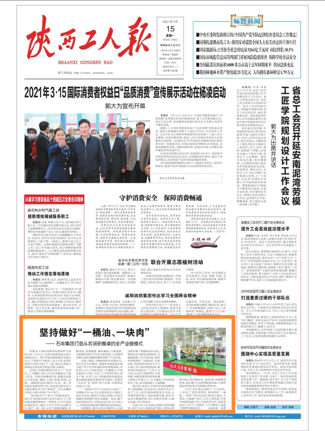 第39個國際消費(fèi)者權(quán)益保護(hù)日前夕,陜西日報、西部網(wǎng)、陜西...